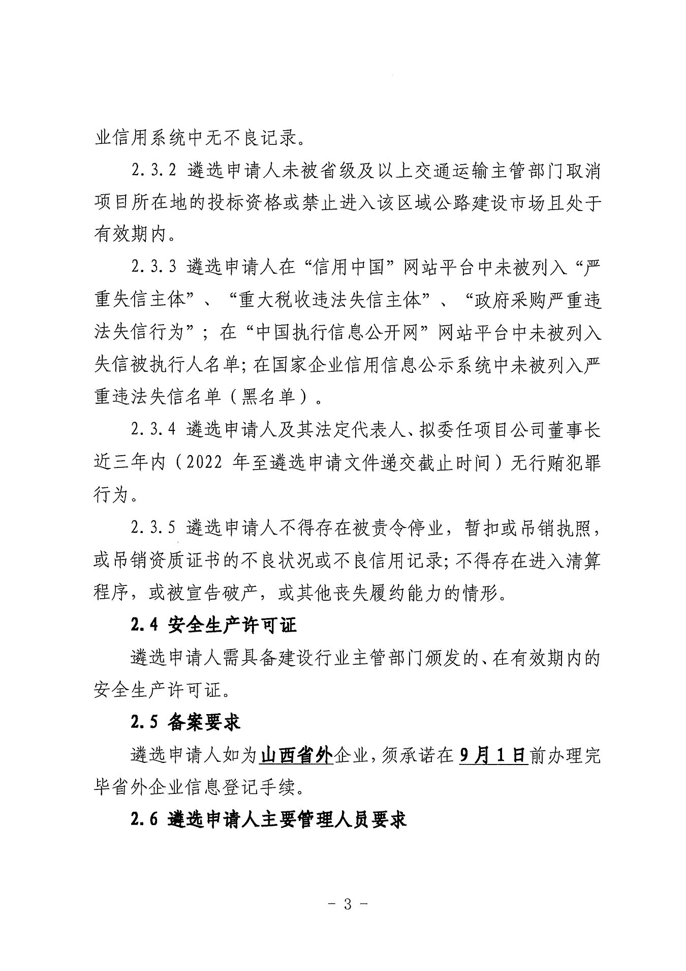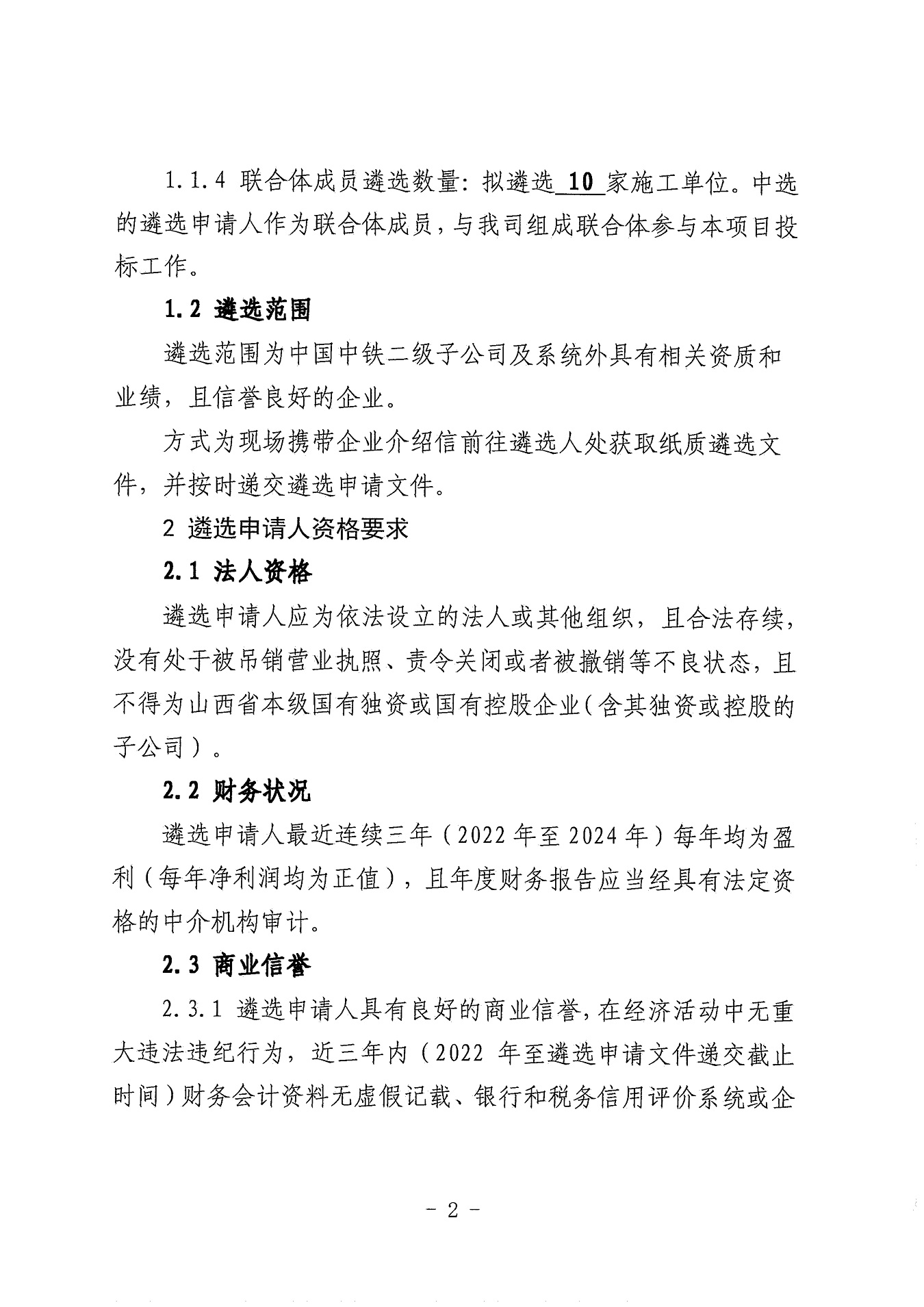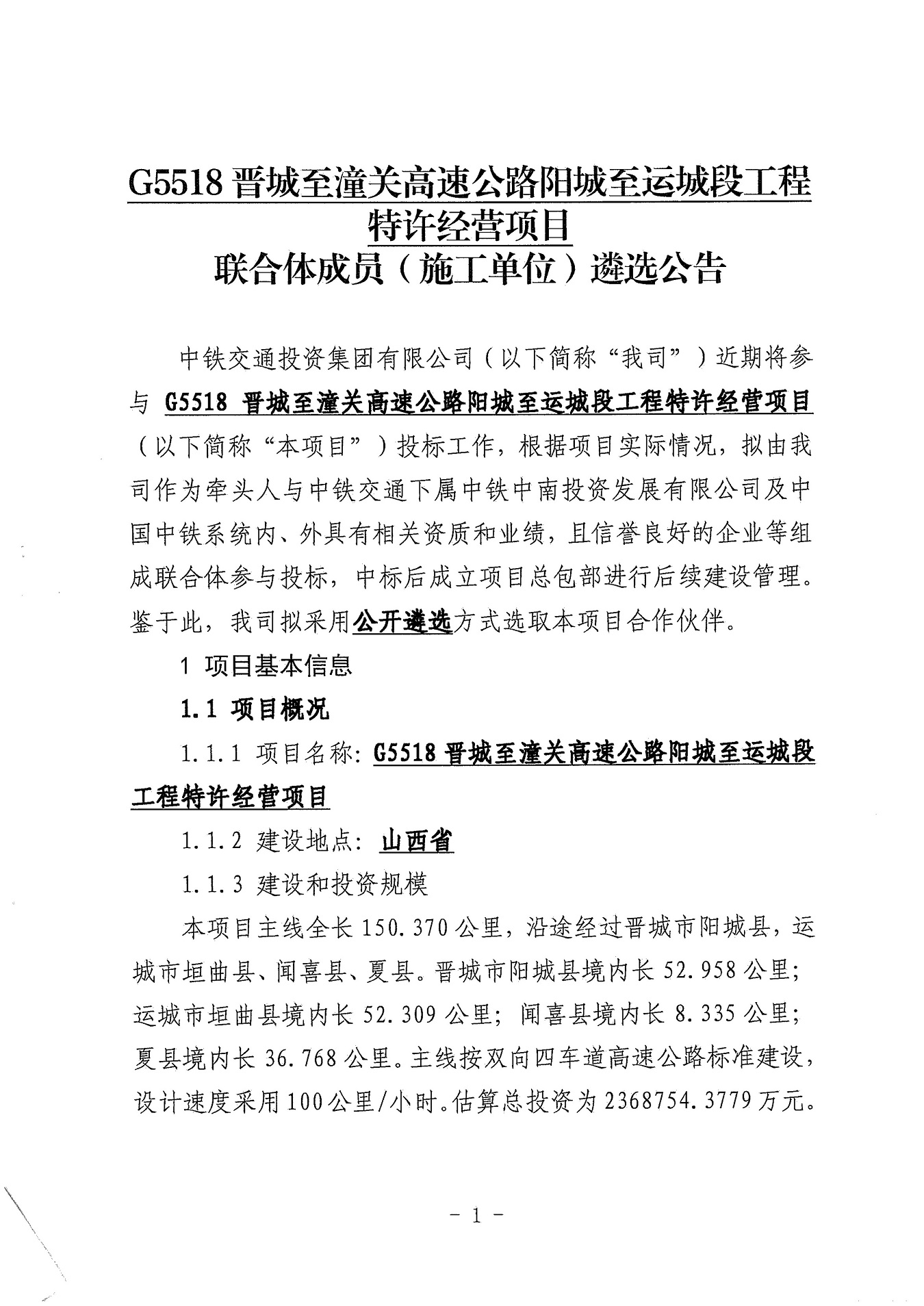 山西陽運高速聯合體成員(施工單位)遴選公告